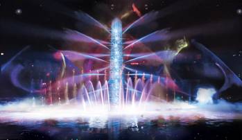 运用水幕、喷泉、焰火、全彩激光、3D影像等全媒体技术,展现一场水与火、高科技与艺术、虚拟与现实的形态变换与视觉冲击,给人一种震撼的全景体验。