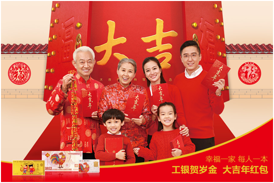 为了尊重、回归、弘扬中国传统文化,为了打造一个快乐又有意义、时尚又有年味、温馨又能留下回忆的中国年,工商银行别具创意的发行《工银贺岁金•大吉年红包》。大红包由一张大吉年生肖贺岁金钞、一张生肖贺岁纪念券、一张生肖贺岁金银卡和一本大吉年过年文化纪念册组成,吉祥满满,惊喜多多!