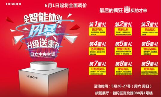 对于近期有购买中央空调打算的朋友,也有一个好消息,日立中央空调品牌日上海站活动将于5月26日和27日举行,活动地点在上海普陀区真北路988弄1号楼,有兴趣的朋友可以关注一下。到店联系人:牛利,电话:15000310060。