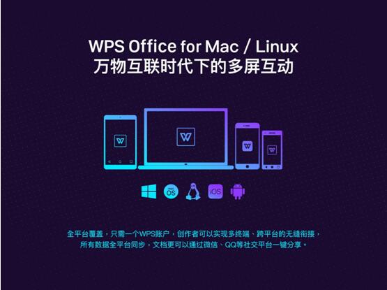 全平台覆盖,是WPS团队对多屏互动的诚意。随着万众期待的WPS Office for Mac的推出, Linux个人版更新,以及WPS文档的发布,用户能够在Windows、Mac、Linux、Android、iOS,以及所有支持标准Hhtml5的浏览器上登录自己的账号,在任何场景下实现全平台创作。
