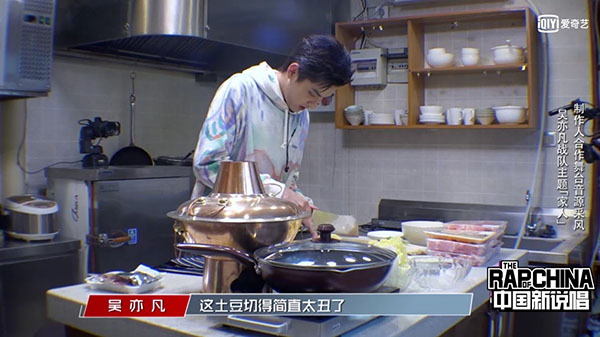 除激烈的九进六突围赛外,本集最大的惊喜莫过于一行人的战队“团建”。为让队员对“家人”这一主题有深刻感悟吴亦凡直接举办了“家庭聚餐”,不仅让三位队员各做一道想要给家人的菜,他自己也准备起了惊喜火锅。不过连队员的饮食习惯都牢记于心的吴制作人,厨房战斗值却为零,当晚“吴亦凡砍土豆”毫无意外的登上了热搜榜第6名,面对“惨不忍睹”的可怜土豆,网友实力调侃道:真•厨房杀手!吃饭期间,吴亦凡还首次谈起“自己初入行时家人并不太支持”,然而即便未来不明朗他也表示“我不后悔”。听完此番暖心分享,那吾克热直言:“他会影响到我在音乐上的创作,和走这条路的一些坚定与信心。”