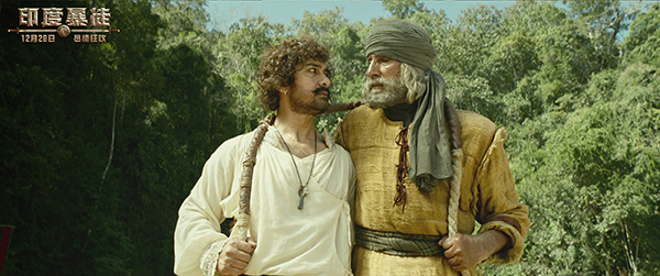 另一位重量级的演员,便是有着“印度教父”之称的阿米特巴•巴强,作为宝莱坞老牌巨星,他不但是阿米尔•汗的“一生偶像”,而且在电影中,他饰演的暴徒首领与米叔饰演的无赖也有对飙演技的对手戏份。预告片结尾两位暴徒上演剑拔弩张的对立戏份,米叔“欺骗是我的本性”与巴强“诚信是我的原则”的台词火星四射,如此扑朔迷离的关系,让人更加对《印度暴徒》的故事走势,尤其是米叔饰演的角色最终的抉择充满了期待。