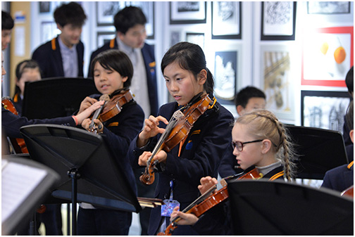 在艺术展的开幕仪式上,小学、中学音乐部的同学们作为开幕表演嘉宾进行了精彩的演出;小学部的管弦乐队还演奏了一首阿根廷作曲家Astor Piazzolla的名曲作品。中小学艺术老师则作为特邀嘉宾,为大家介绍耀华如何激发学生在视觉艺术领域的独特造诣;各个画作的小艺术家们也在现场讲述自己创作的灵感之源及艺术设计的理念。