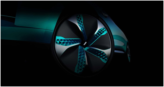 该车轮毂为双色设计,外侧采用五辐鳞片状进行修饰,造型颇有新意。轮胎则一改SUV常用的高扁平比,转而采用只有在性能车上才配备的超低扁平比轮胎,这样有利于抓地力和运动性能的提升,预示着其量产车版本会向运动方向进阶。