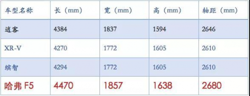 年轻人选车喜欢大,主要看重的是大空间的乘坐舒适性以及承载力,为了方便大家对比,笔者特意将日产逍客、本田X-RV、缤智以及哈弗F5的车身尺寸放在下表中。