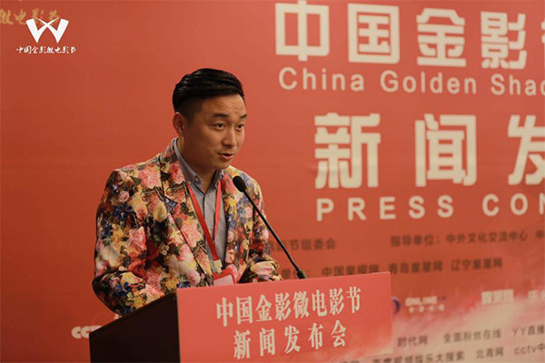 2017年底我想以中国金影命名一个微电影节,联合各大资本公司,邀请了众多影视公司发起了中国金影微电影节这个项目,希望通过中国金影微电影节为更多有梦想有作品有创作能力的人实现电影梦,更是为了中国电影事业贡献力量。”