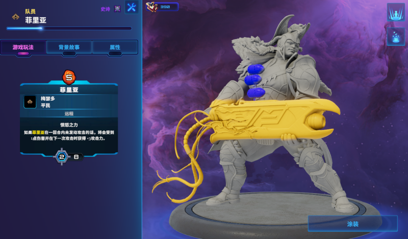 只要不攻击,每回合攻击力都能提升3点,可以很形象的说:频繁攻击的菲里亚没有任何威胁可言,从不开枪的菲里亚就是对方指挥官头上的达摩克利斯之剑!